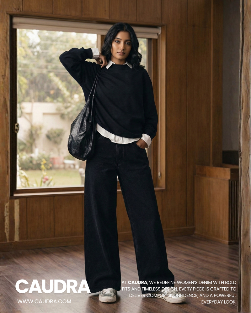 Caudra Black High-Waist Wide-Leg Jeans